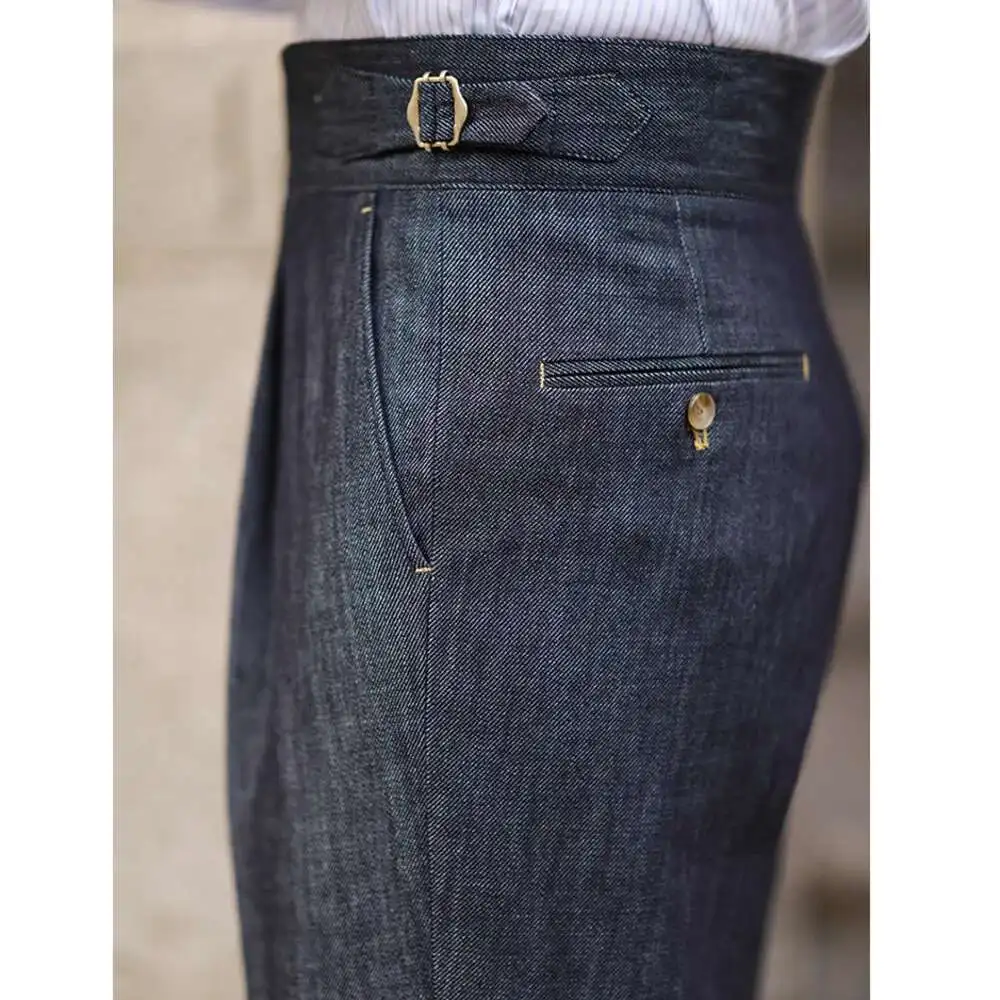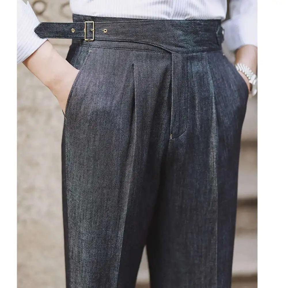 2022 Fashion Mens Dress Pant High Waist Straight Pants Men Spring Business Versatile Belt Trouser Gentleman Paris Button Pant - La Tienda Bella